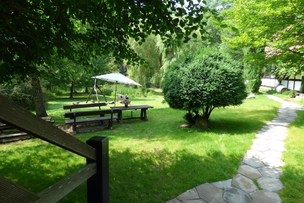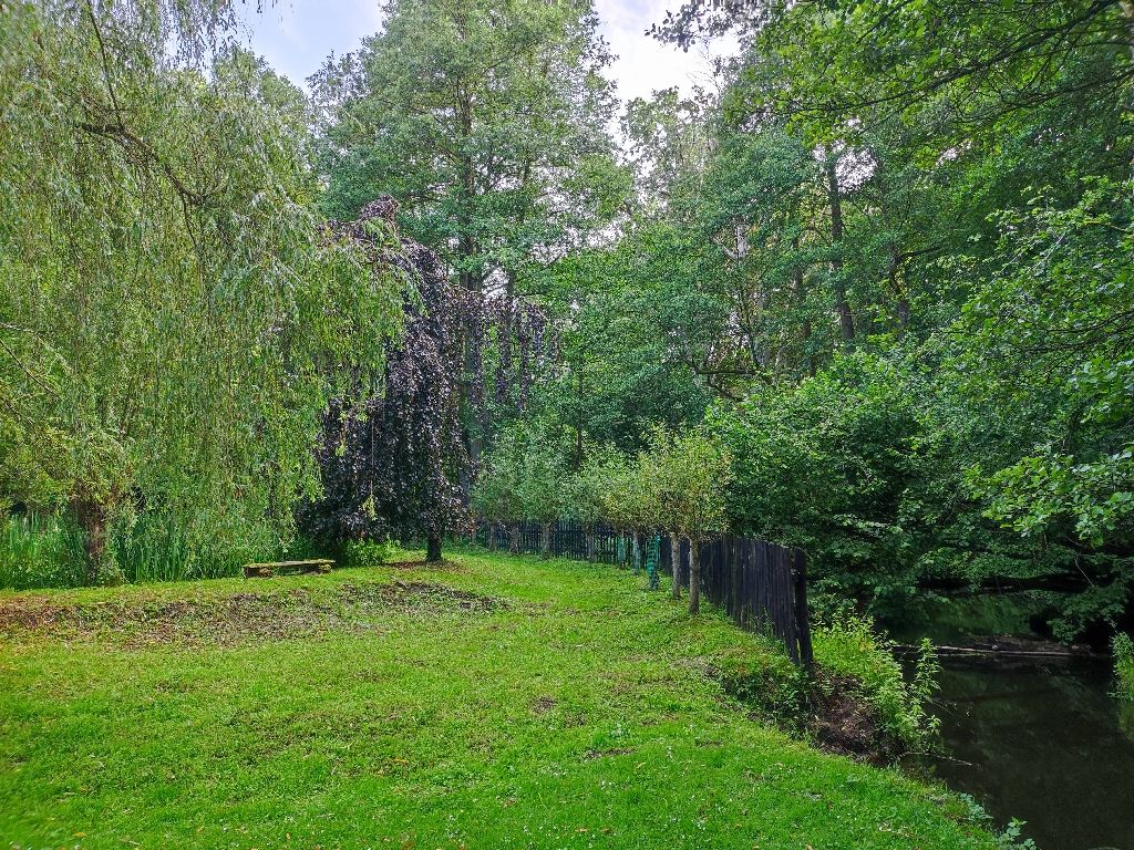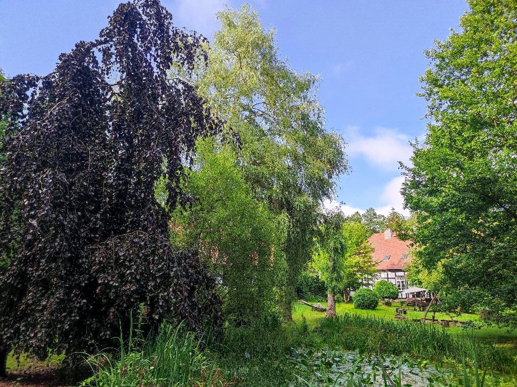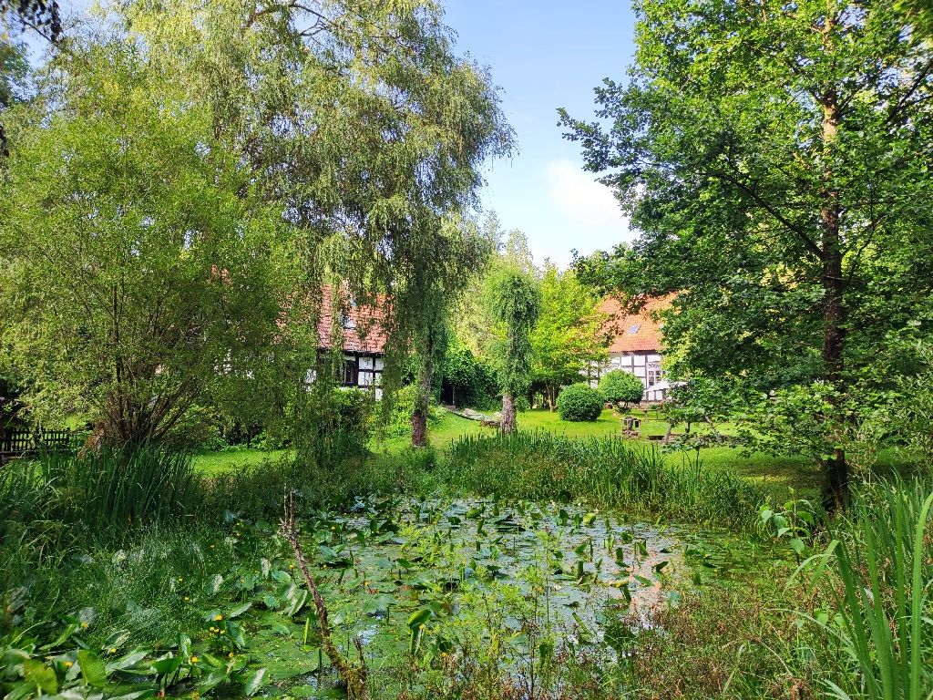 Durch Garten, zum Teich, zum Fluss und zu den Nebengebäuden
