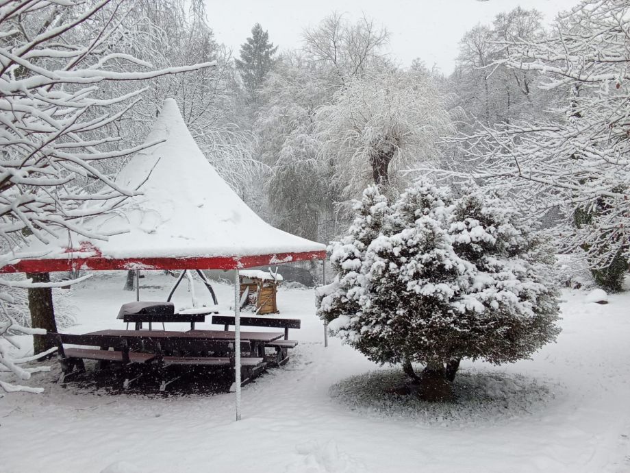 Zu Saisonbeginn vorhanden sind in der Regel Sonnenschirm, gebrauchte Bücher, Tischtenniskellen, Federballspiel, Decken, Volleyballnetz, Grill, Spiele für draußen, Sonnenschirm, Terrassenmöbel, Affenschaukel und Slackline über den Fluss.