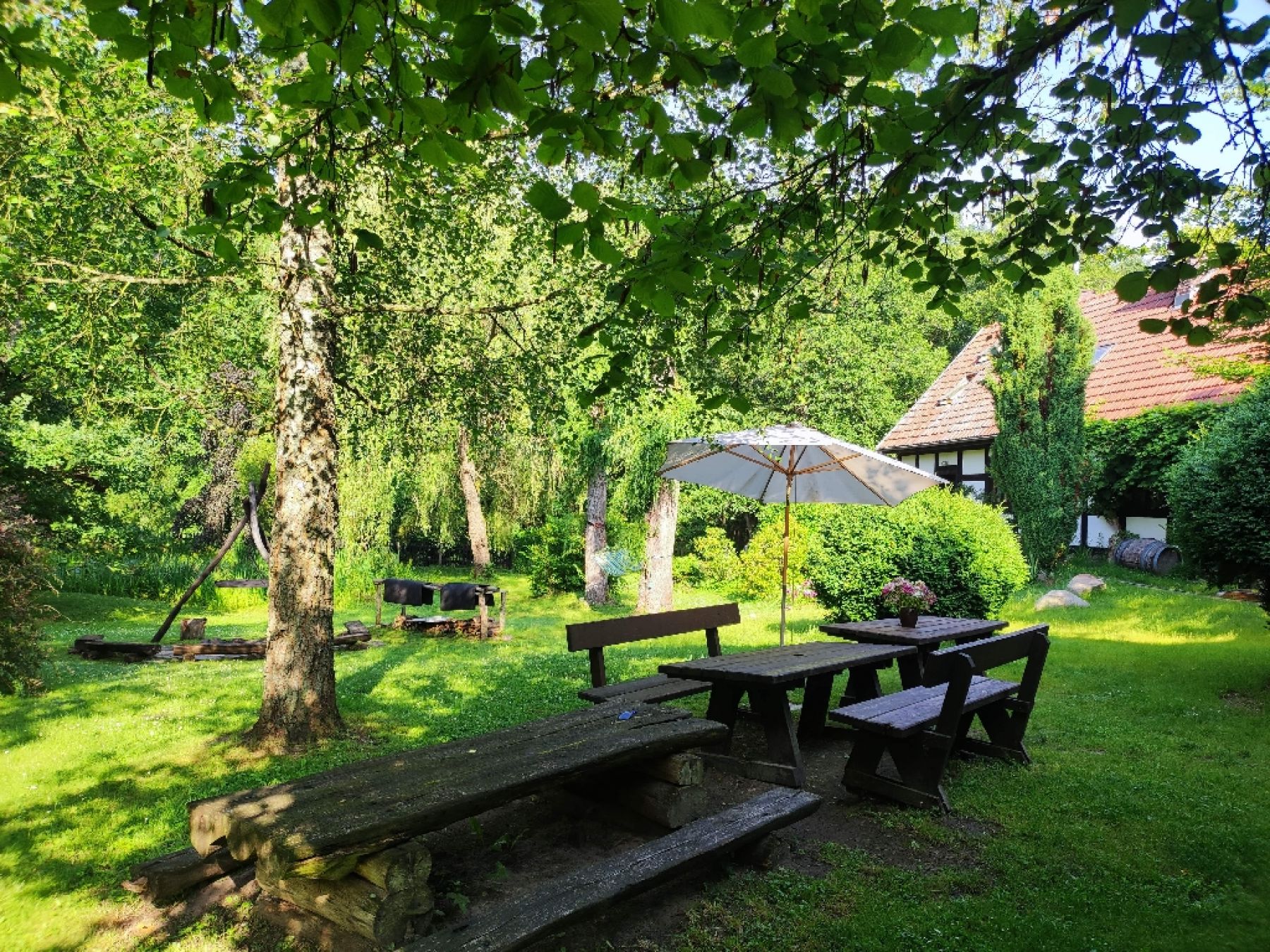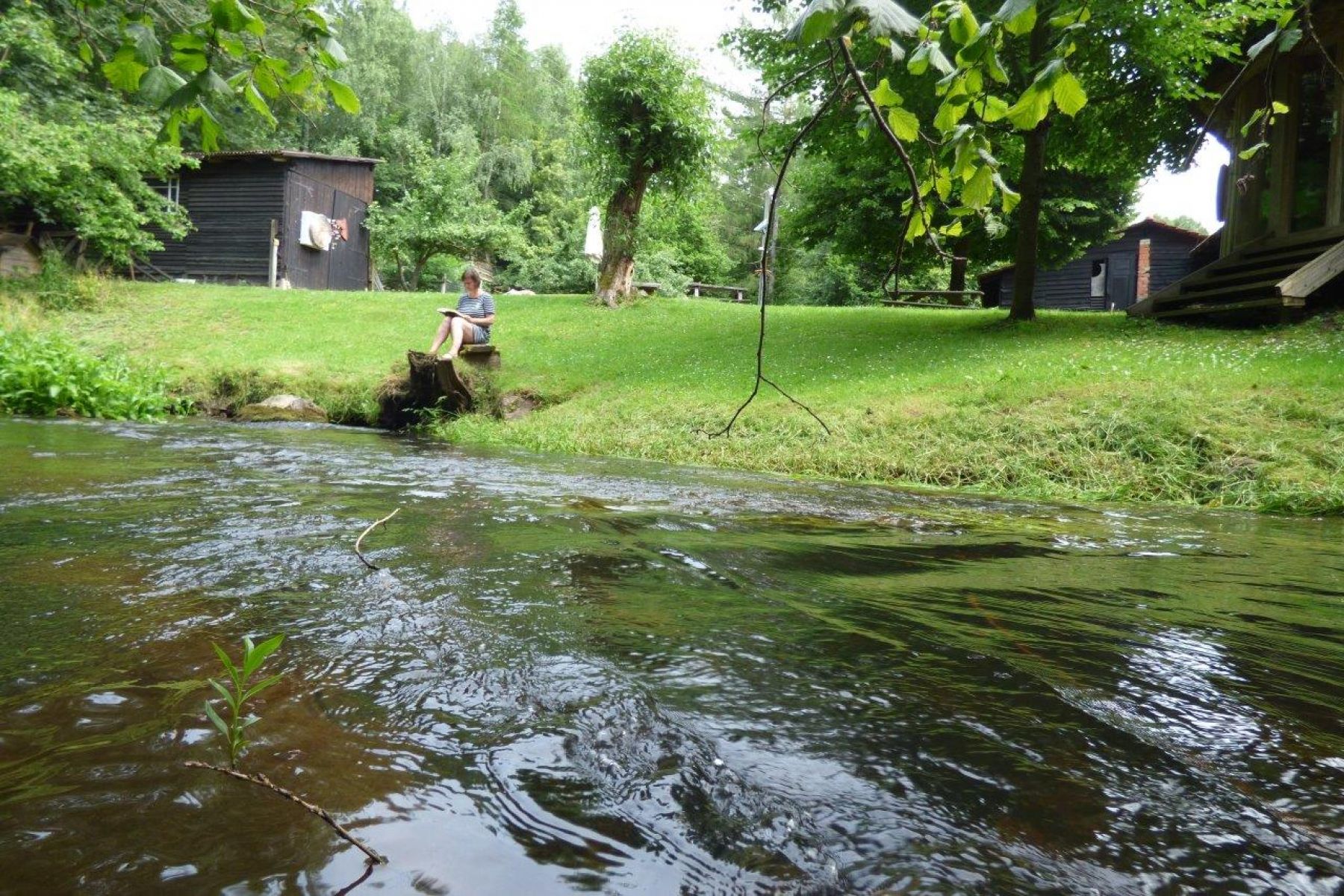 Ein kleiner Fluss am Ende des Gartens lädt zum Baden und zum  Angeln ein.