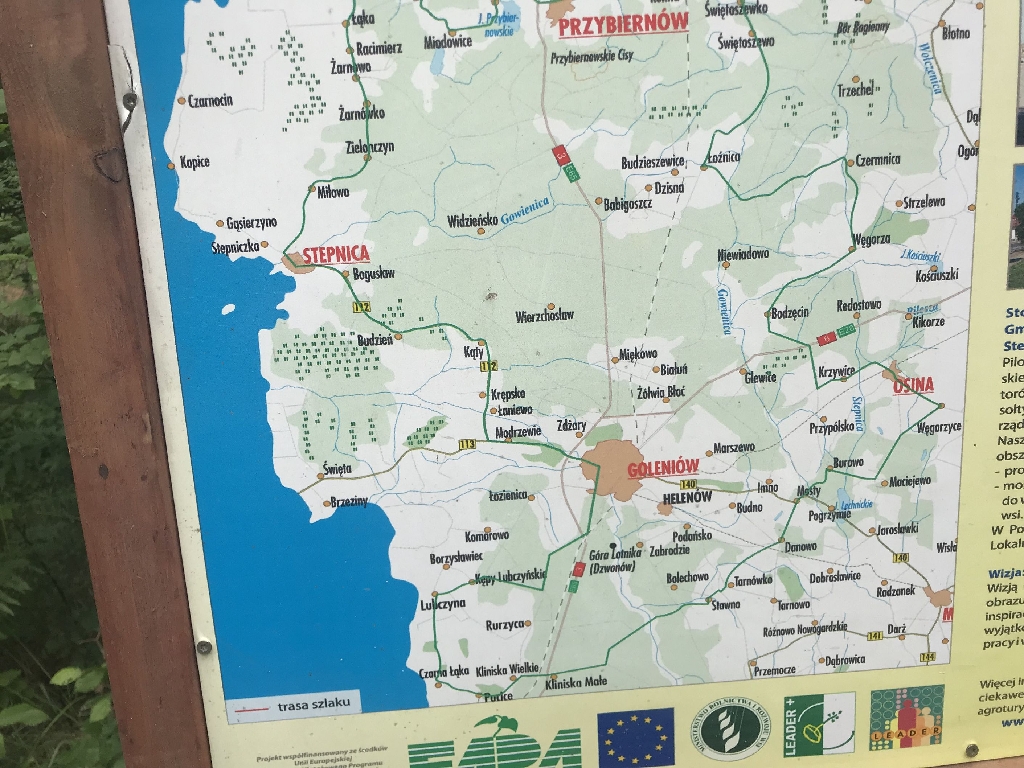 Auf dem alten Bahndamm der Schmalspurbahn führt der Radweg von Widzieńsko bis zum Hafen von Stepnica und von dort weiter auf den Haffrundweg.
